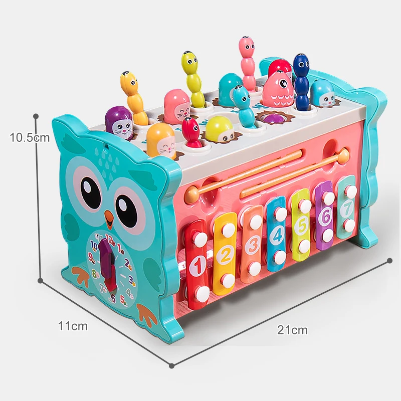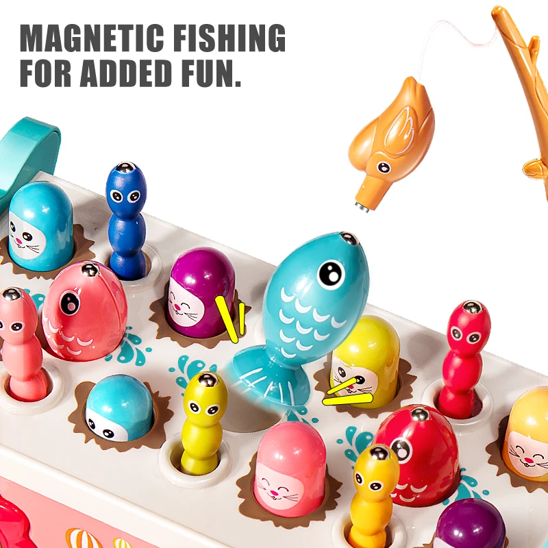 Montessori magnetic fishing cube toy featuring colorful owls, designed to develop hand-eye coordination, sensory skills, and early learning through fun sorting and magnetic play for kids aged 3+.