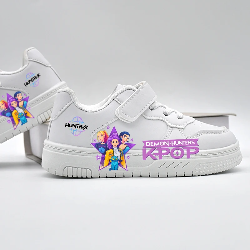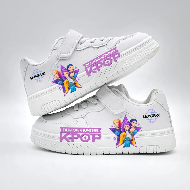 Trendy KPOP-style white sneakers for kids, designed for everyday school and outdoor wear. Lightweight, breathable, and anti-slip for all-day comfort for boys and girls.