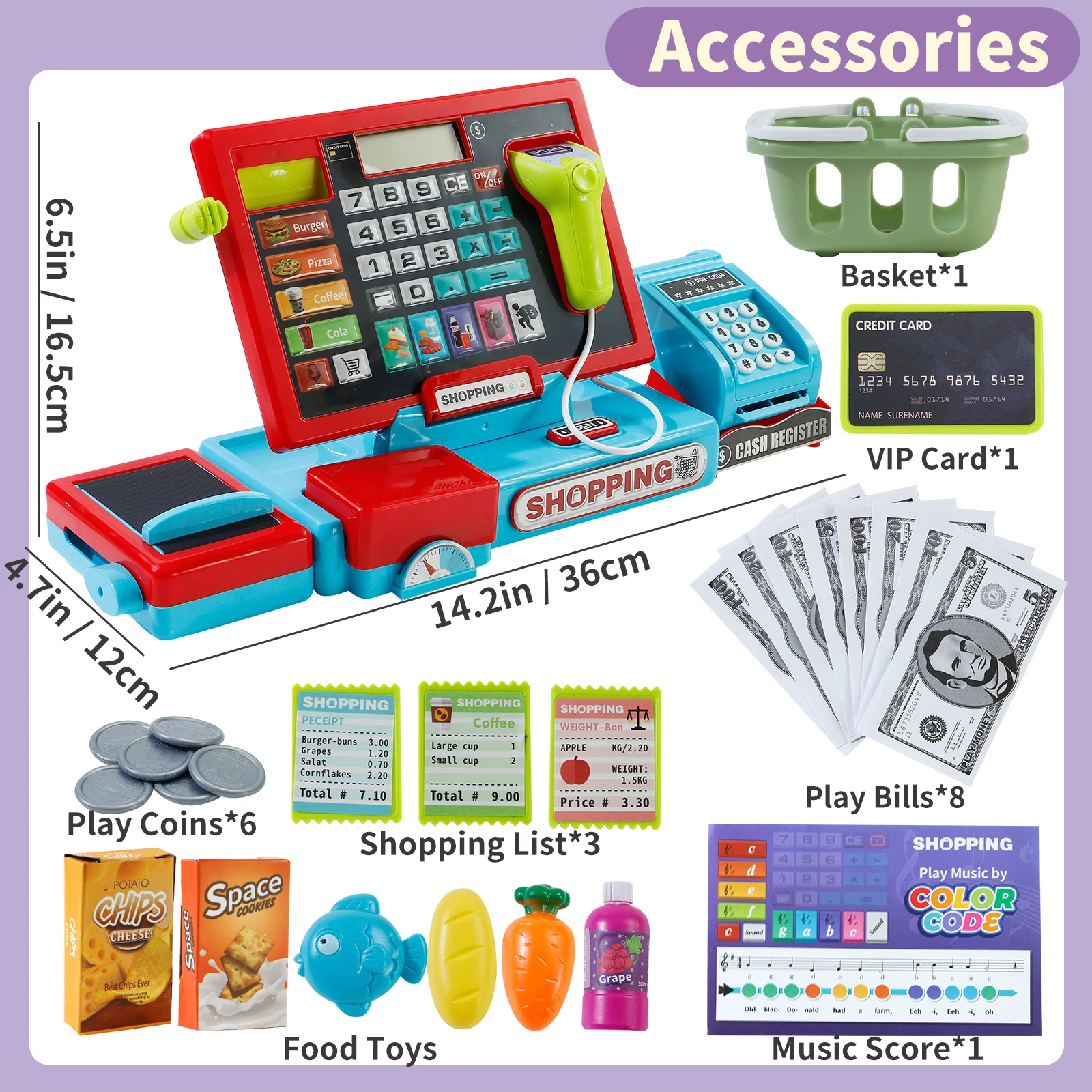 This shopping cash register playset with a real working calculator lets kids enjoy fun pretend store play while learning basic math, counting, and money skills. Designed as an educational role-play toy, it encourages imagination and hands-on learning, making it a perfect gift for Christmas, Halloween, New Year, or everyday playtime.