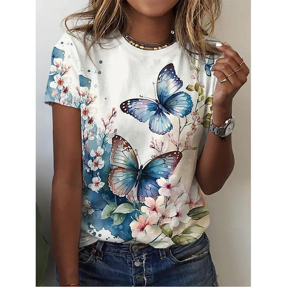 Trendy oversized O-neck T-shirt with a vibrant 3D butterfly print, perfect for a stylish and comfortable summer look. #SummerFashion #OversizedStyle tinyjoyessentials.com