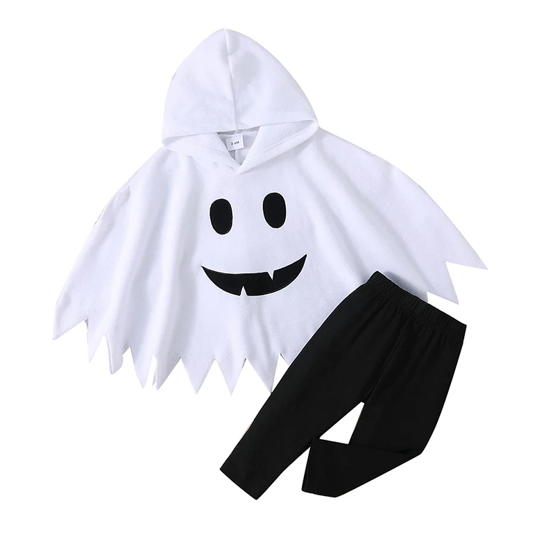 Get your little one ready for spooky season with this adorable Toddler Ghost Outfit Set. This 2-piece Halloween set includes a cozy hooded cloak-style sweatshirt and matching long pants for a fun and festive look. Featuring a smiling ghost face print, it brings playful charm to any Halloween celebration. Made from soft, breathable fabric, it keeps toddlers comfortable whether they’re trick-or-treating, playing, or lounging at home. The hoodie adds extra warmth for cool autumn evenings, while the pants offer flexibility for active little ones. Designed for both boys and girls, this unisex set is perfect for siblings or friends who want a matching Halloween style. The elastic waistband ensures a snug yet gentle fit, making it easy to wear all day. Parents will love how simple it is to wash and reuse, keeping its vibrant design even after multiple wears. Ideal for daycare parties, photo shoots, or family gatherings, it’s a versatile outfit that blends comfort with festive fun. The ghost print design strikes the perfect balance of spooky and cute, making it great for younger children. This set also makes a thoughtful gift for fall birthdays or baby showers during the Halloween season. Dress your toddler in this Ghost Outfit Set for an unforgettable Halloween look.